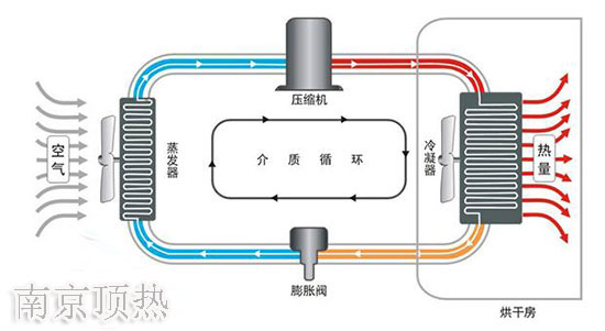 隨著全球能源危機加劇和節能環保呼聲的高漲,傳統的燃煤、燃油、燃氣燒柴鍋爐,因成本高、破壞環境、污染環境,將逐漸限制使用最終淘汰。這是世界潮流,大勢所趨。隨著勞動成本的不斷提升高,產品質量競爭的不斷加劇,技術革命,設備更新機器代替人工,產品質量只能控制,這將強力推動企業的優勝劣汰和產品換代與產業升級。空氣能熱泵作為一項高效、節能、環保新技術,在烘干領域迅速推廣應用。烘干溫度在80度以下的物料,選擇熱泵烘干將是企業的一個首選方向。熱泵干燥正朝著提高干燥溫度,開發智能自動控制技術更加高效節能方面發展,熱泵干燥在降低能源消耗和提高產品質量兩者完美統一方面的貢獻,給干燥行業帶來重大的技術革命。今天,南京頂熱帶大家詳細的了解下熱泵烘干技術。